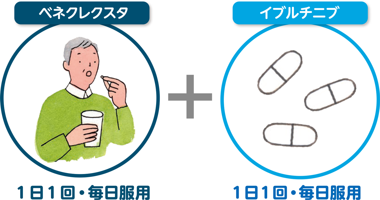 ベネクレクスタとイブルチニブはどちらも経口薬のため、通院での治療が中心となります。